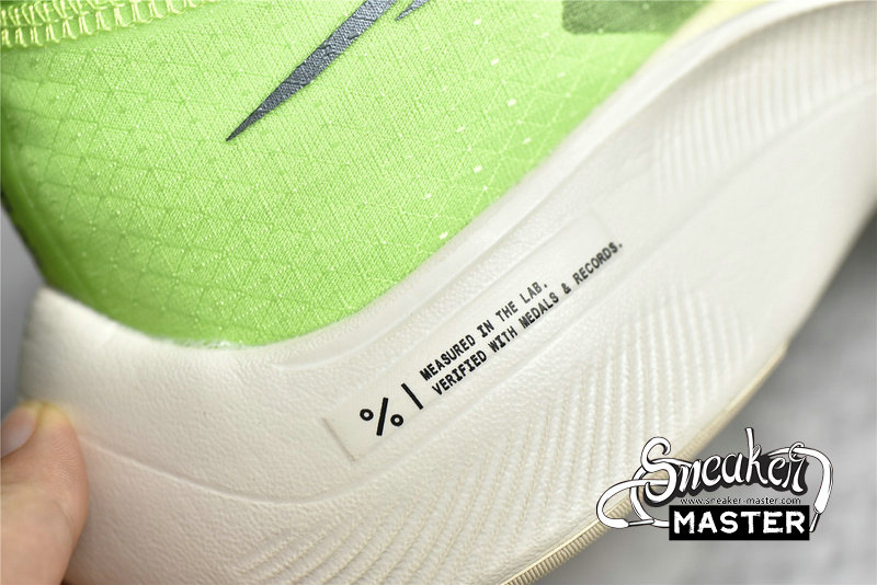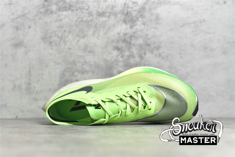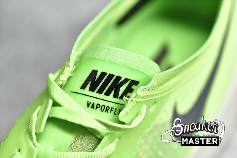 - Designed for long-distance running, the ZoomX Vaporfly NEXT% 'Electric Green' features a lightweight construction. The shoe's VaporWeave mesh construction appears in Electric Green, supported by a tonal eyestay. Black branding contrasts the design, while underfoot, a ZoomX midsole provides cushioning, with a tapered heel promoting a more natural stride. The outsole includes forefoot traction that draws from insights provided by Mo Farah, Geoffrey Kirui and Eliud Kipchoge.