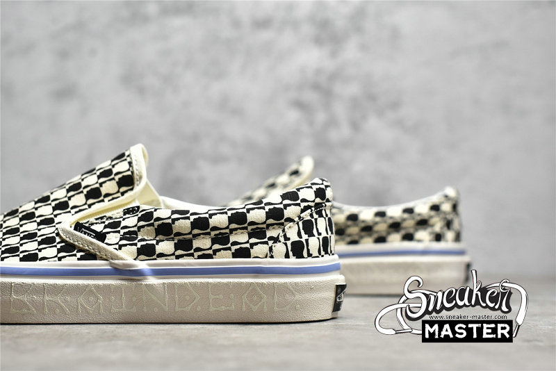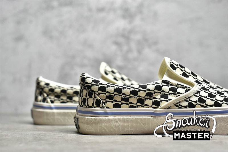 - The first half of the collection focuses on the Vans OG Half Cab LX and Vans OG Lampin LX. The Vans Half Cab is celebrating its 30th Anniversary so it’s only right that the sneaker gets dressed festive colors. Brain Dead gives the silhouette a colorway that features light blue, purple, tan, and white. The multi-colored eyelets add a vibrant twist that pairs well with the bold laces. The Vans OG Lampin LX also adds color to the collection with shades of green, blue, and yellow. The second installment of the collection features the Vans OG Authentic LX and the Vans OG Slip-On LX. On both pairs Brain Dead reimagines Vans’ iconic checkerboard print by incorporating the brand’s signature head logo into the pattern.